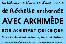 Le caractère Archi a été développé pour la création de l'identité d'un studio d'architecture. Archi est une linéale géométrique au fût régulier et gras. Ses proportions robustes font échos aux caractères de titrages du début du XXe siècle, et sa construction géométrique renvoi aux expérimentations des avant-gardes européenne. La symétrie stricte et récurrente donne à ce caractère un aspect stable. L’asymétrie appliquée au placement des accents apporte une touche de modularité, un esprit joueur.
