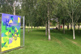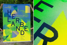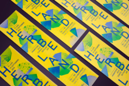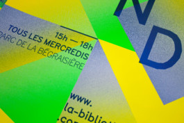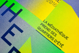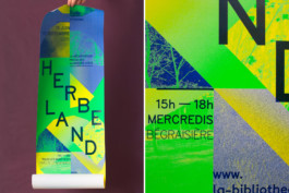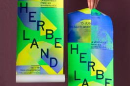 Des tons vifs et acidulés pour annoncer l'événement Herbeland : durant la période estivale, animations, lectures et jeux dans les prairies entourant la médiathèque. Inspirées de la structure centrale imaginée par le collectif d’architectes nantais Fichtre, les formes de ces compositions représentent tour à tour un vaisseau, une assise, une table de jeux, une portion de temps à partager durant ces quartiers d'été.