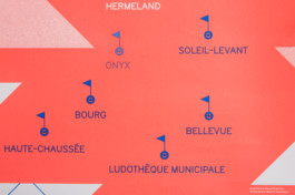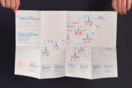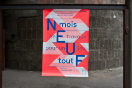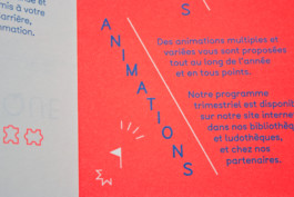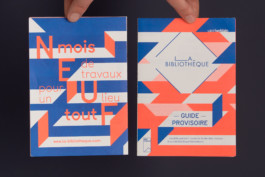 Pour informer les usagers sur la fermeture de la médiathèque principale durant les 9 mois de travaux de rénovation, les principes graphiques s’appuient sur l’univers visuel du chantier : couleurs fluos, formes tranchées et principe d'une construction qui évolue d'une image à l'autre. Au fil des mois, une narration se met en place. Pour ce premier temps de communication, la rubalise de chantier rempli le visuel, en rouge fluo. Le ton du message se veut dynamique et enthousiaste, promesse d'un heureux événement.